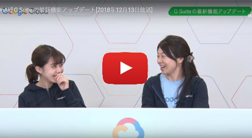 2018 年最後の放送は、G Suite の最新機能アップデートがテーマです。 働き方分析に役立つ機能や既存のシステム・ツールとより連携しやすくなった G Suite。今年だけでも 200 以上の新機能が追加されました。番組では、スマート、シンプル、セキュアをキーワードに最新の G Suite をご紹介します。