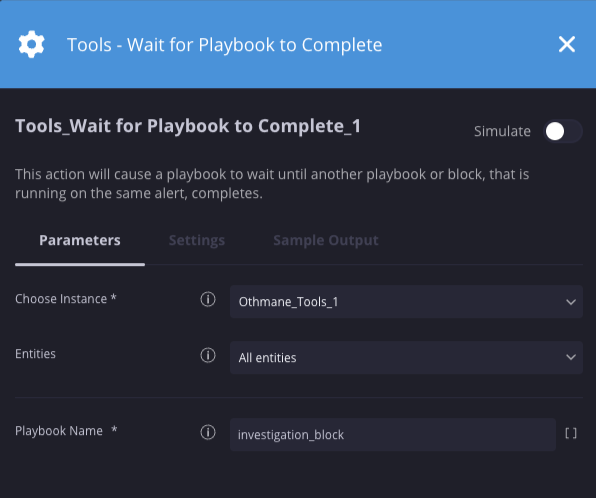 | Nome do playbook | String | N/A | Não | Especifique o nome do bloco ou playbook que você quer concluir primeiro. |