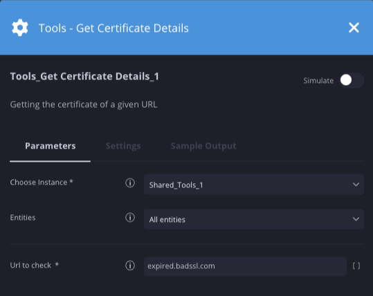 | URL para verificar | URL | expired.badssk.com | Sim | Especifique o URL de onde os detalhes do certificado serão recuperados. |