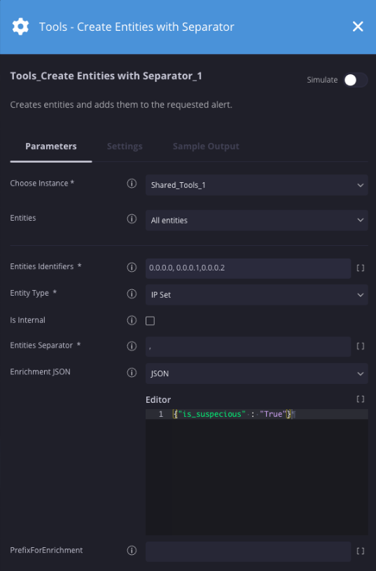 Enriquece todas as entidades com um novo campo "siemplifytools_extracted_domain" que contém o domínio extraído do identificador da entidade. Se a entidade não tiver um domínio (hash de arquivo, por exemplo), ela não vai retornar nada. Além das entidades, o usuário pode especificar uma lista de URLs como parâmetro e processá-los sem enriquecer, naturalmente.