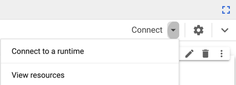 노트북에서 추가 연결 옵션 확장 화살표를 클릭한 후 런타임에 연결을 선택합니다.