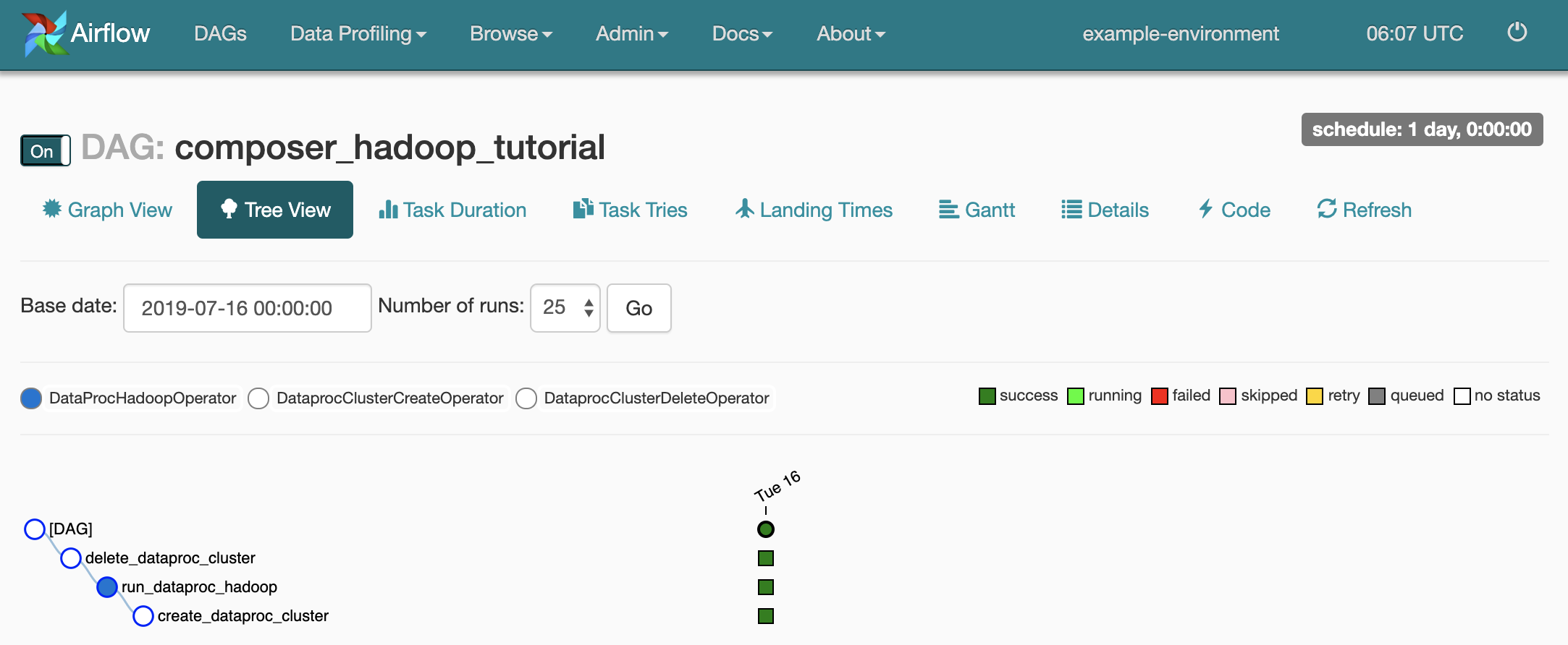 您也可以前往下列控制台頁面,查看工作流程的狀態和結果:composer_hadoop_tutorial