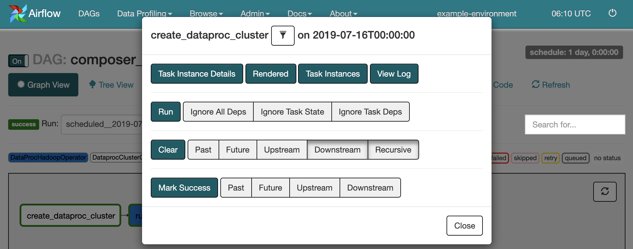 Cloud Composer 會將 DAG 新增至 Airflow,並自動排定 DAG 的執行時間。DAG 會在 3 到 5 分鐘內產生變化。