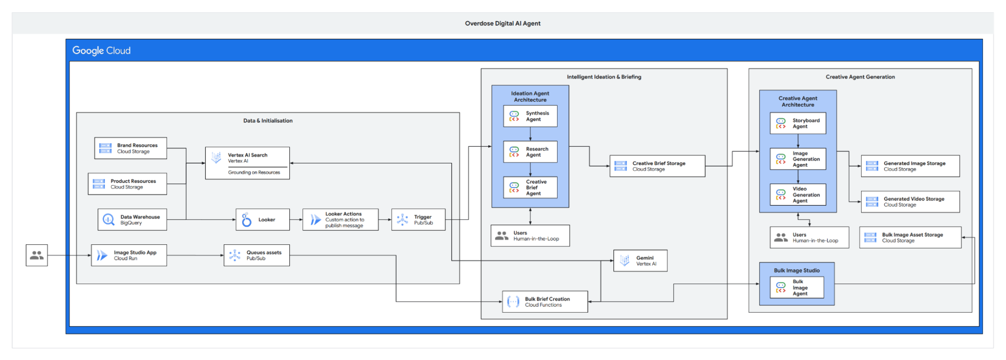 Overdose Digital built a central intelligence layer with Looker and BigQuery, then launched Project Bluesky to link data with creative production. They also used Gemini and Vertex AI to create an agentic workflow that generates hyper-localized assets with human oversight.