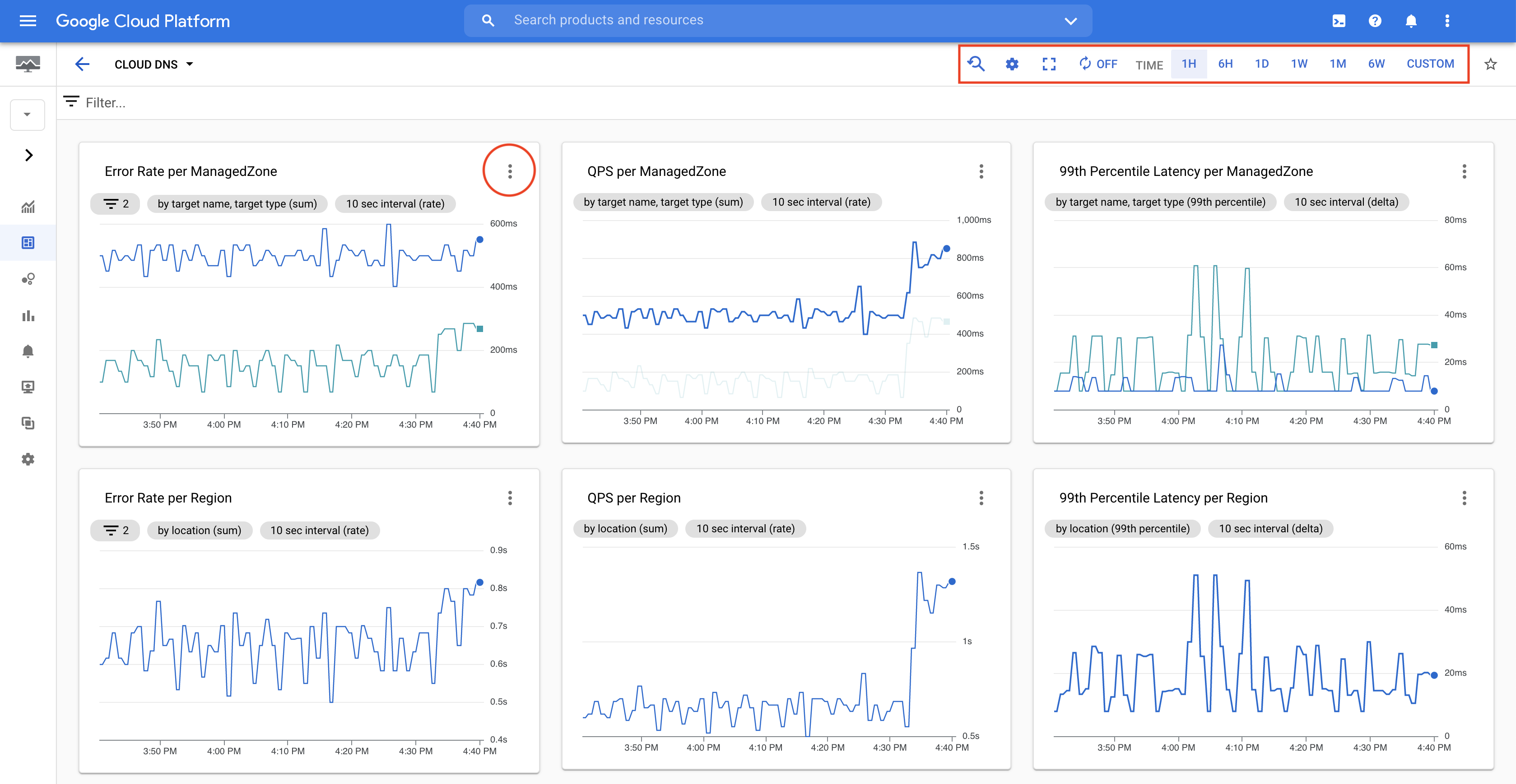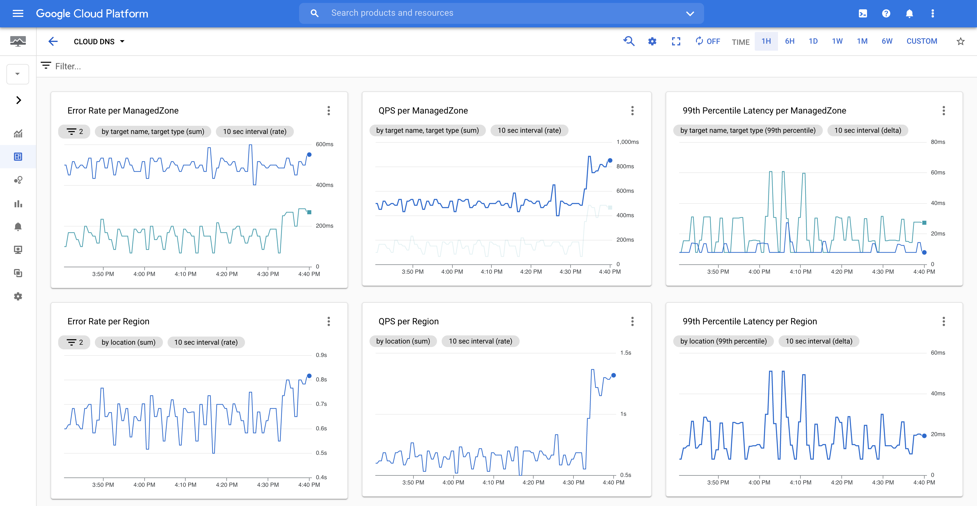Cloud DNS 監控資訊主頁 (按一下可放大)。