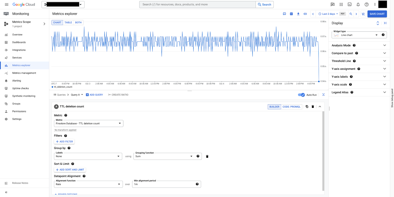 TTL 측정항목은 Firestore Native와 Datastore 모드의 Firestore 데이터베이스 모두에서 사용할 수 있습니다. 이러한 측정항목을 사용하여 적용된 TTL 정책의 효과를 모니터링합니다.