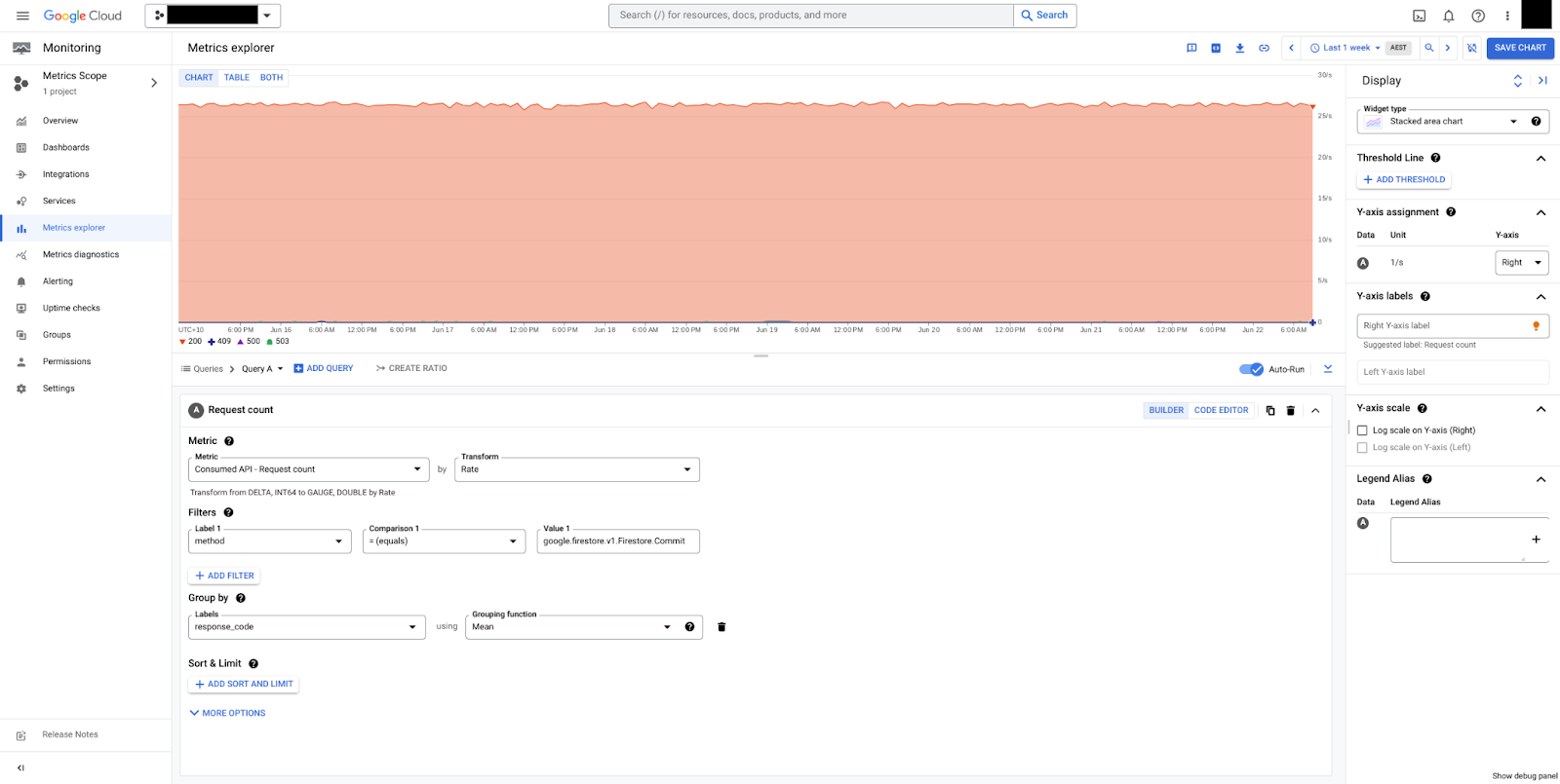 입니다. 이 라벨은 호출된 기본 RPC 메서드를 나타냅니다. 호출하는 SDK 메서드의 이름은 기본 RPC 메서드와 동일하지 않을 수 있습니다. SDK는 상위 수준 API 추상화를 제공하기 때문입니다. 하지만 애플리케이션이 Firestore와 상호작용하는 방식을 이해하려면 RPC 메서드 이름을 기반으로 한 측정항목을 이해하는 것이 중요합니다.