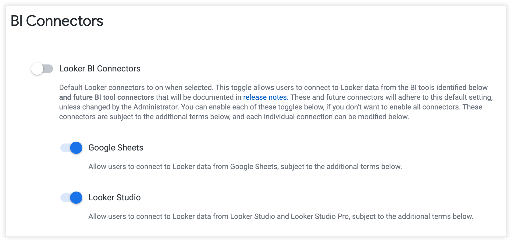 Looker 管理員必須在 BI 連接器管理頁面中啟用這項功能。