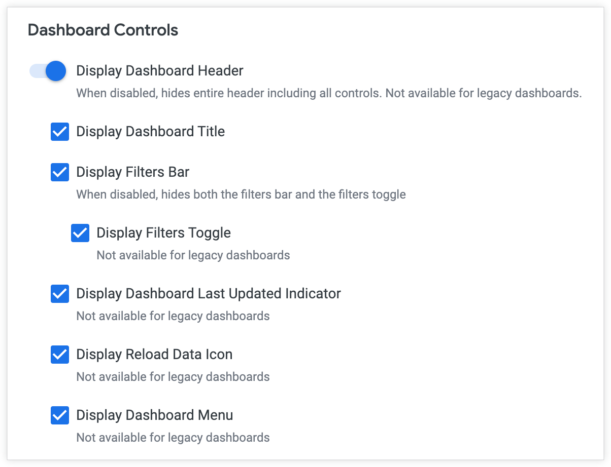 這項功能現在已預設為啟用,可讓管理員使用者在嵌入式資訊主頁上顯示及隱藏資訊主頁標頭元素。