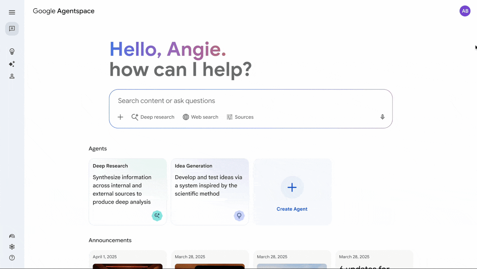 Google Agentspace is now part of Gemini Enterprise. The conversational AI and agent creation and orchestration technology behind Agentspace is now powering the core functionalities of the Gemini Enterprise platform. This, combined with Google DeepMind's cutting-edge AI models, Google-built agents, and ability to connect across your company's data to search, analyze and synthesize insights, brings the best of Google AI to every employee, for every workflow through a single, secure agentic platform.