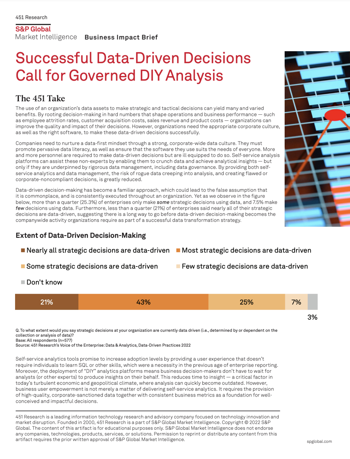 In this analyst whitepaper, you'll learn about the state of strategic data use in today's business environment, how your employees and your data team stand to benefit from self-service analytics, and where this data strategy fits in the future of corporate decision-making.
