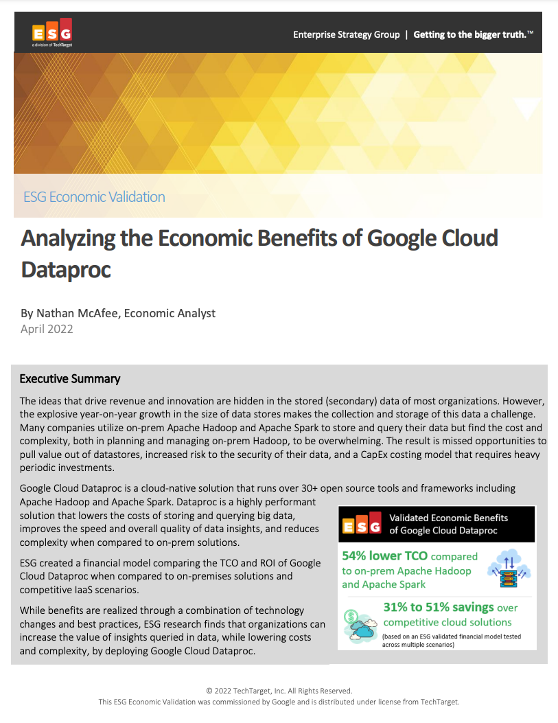 ESG dives deep on the economic benefits of Google Cloud Dataproc