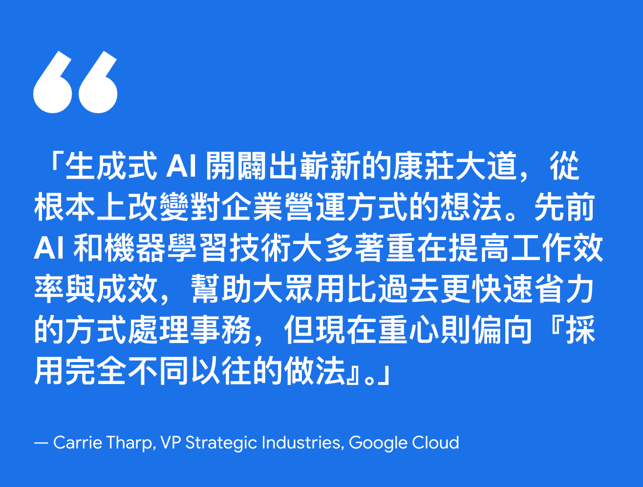 歡迎立即深入瞭解生成式 AI 如何協助貴公司創造全新價值。