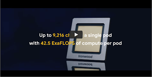 Optimized for Large Language Models (LLMs): Ironwood is specifically designed to accelerate the growing demands of LLMs and generative AI applications.