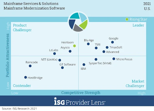 Google is named a Leader in the Mainframe Modernization Software quadrant in the 2021 ISG Provider Lens™ Mainframe Services & Solutions Report for the U.S.