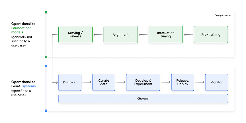 Moving from prototypes to practical applications in generative AI is hard with a number of steps in its operational life cycle. This whitepaper explores adapting MLOps for generative AI, along with its associated considerations and also introduces Vertex AI's toolset to address the unique demands of foundation models and generative AI applications.